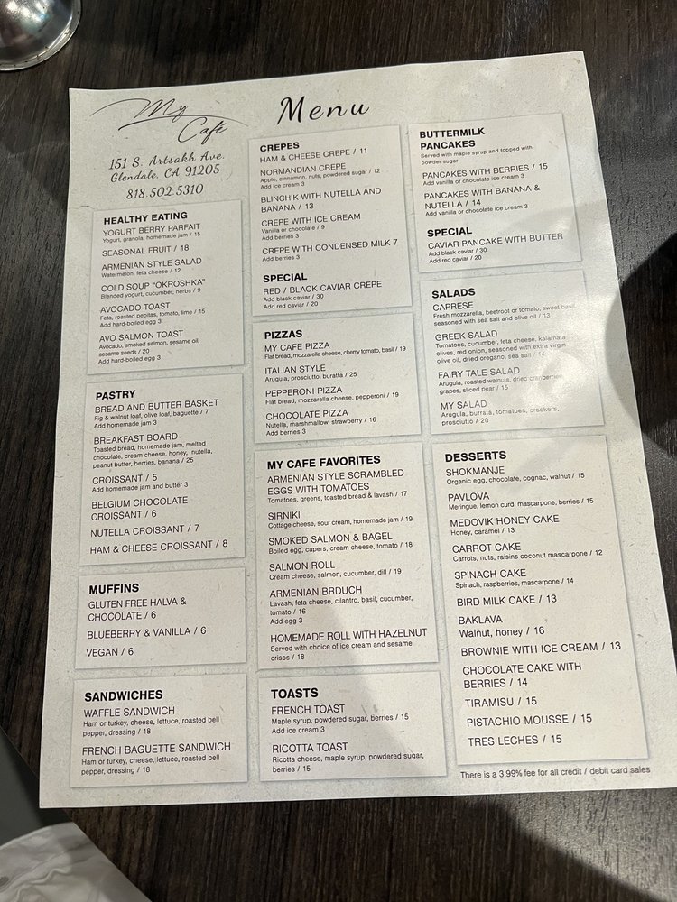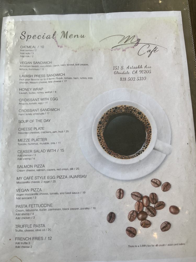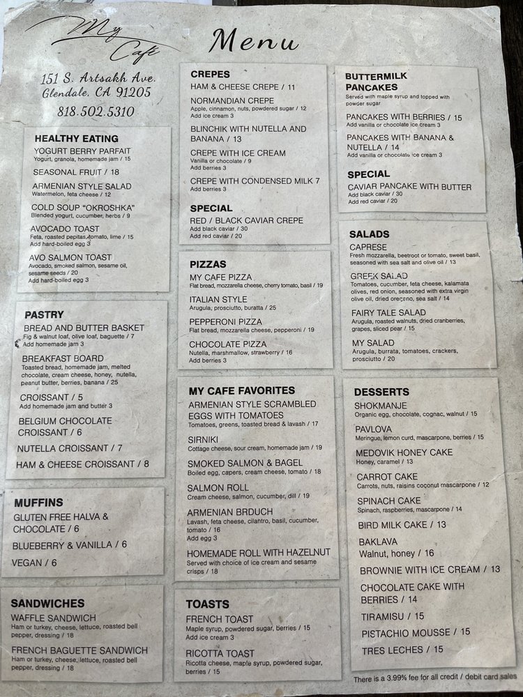 Welcome to My Cafe and Lounge, a hidden gem nestled in Glendale, CA, offering an inviting atmosphere for breakfast and brunch lovers. Situated at 151 S Artsakh Ave, this family-owned cafe boasts a diverse menu that highlights fresh, quality ingredients. Customers rave about the irresistible vegan pizza and delightful desserts, showcasing their commitment to delicious and inclusive dining options.